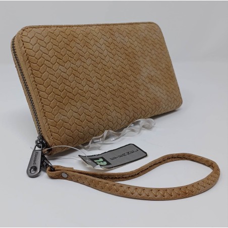Pochette synthétique effet daim, fonction porte feuille, porte monnaie et porte carte