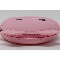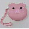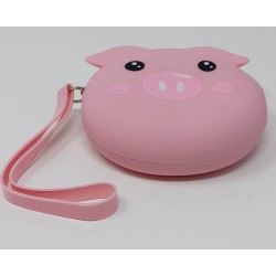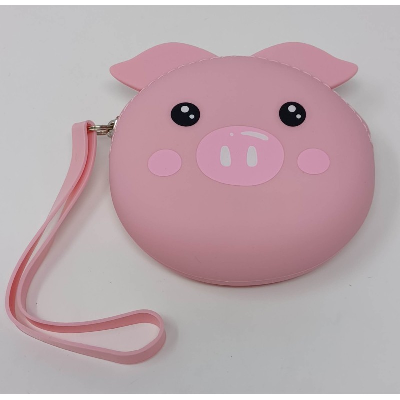 Porte monnaie enfant cochon en silicone avec une fermeture zippée et petite lanière pour porter à la main.